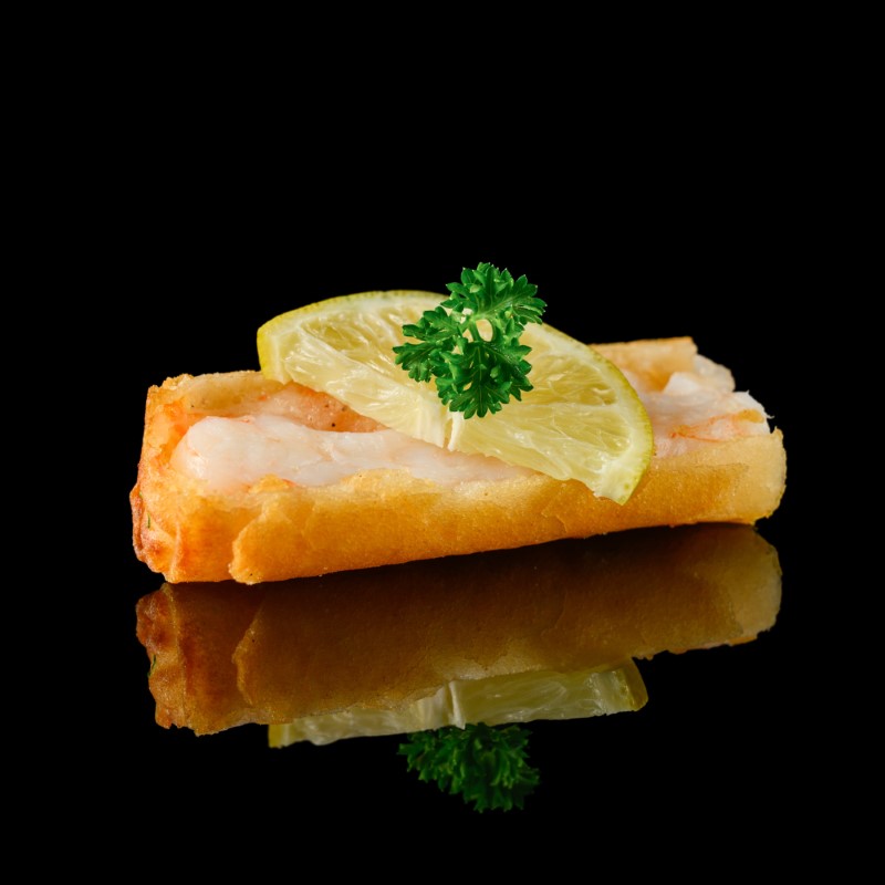 Prawns wrapped in Feuillet de brick pastry with chili and lime dressing