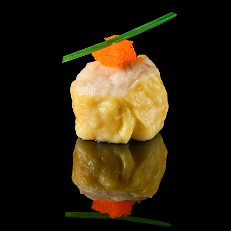 Siu Mai are traditionally made with a combination of pork, shrimp, and prawn with trout eggs, these open-topped dumplings symbolize wealth and are enjoyed as a popular delicacy in Cantonese cuisine.
